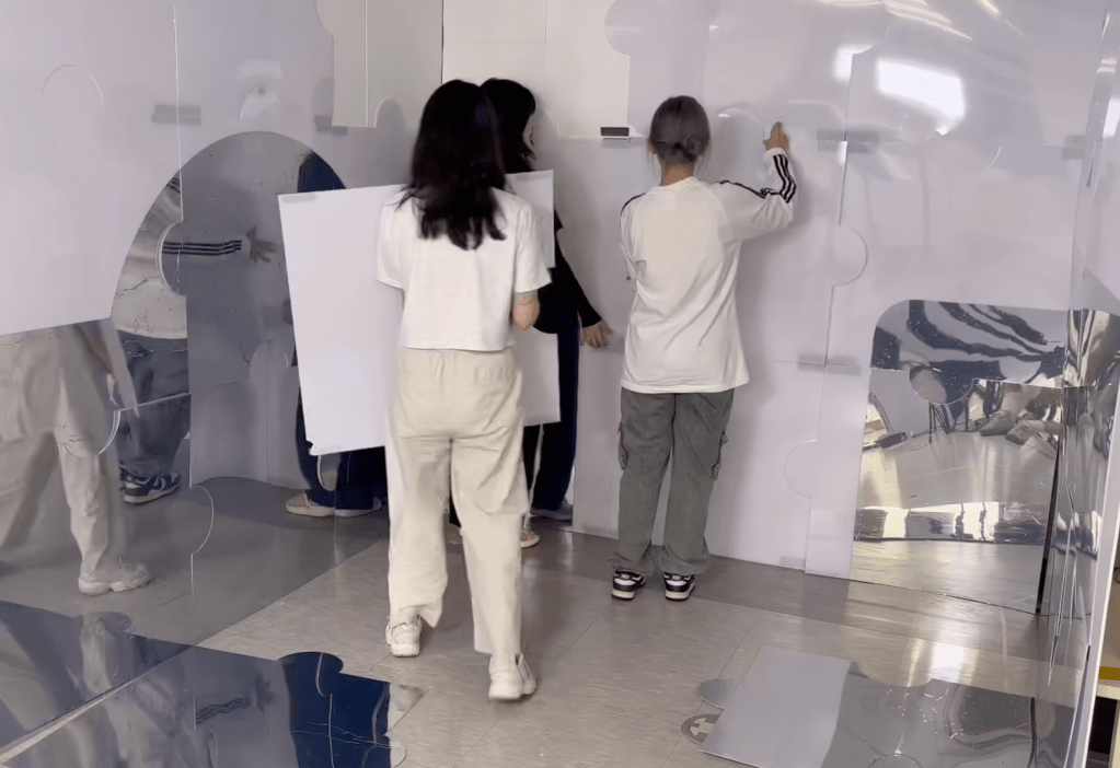 This piece is completed by audience’s participation and It will never be completed without people. Since the puzzle pieces are too big to complete with one person, it needs a lot of people to complete. Furthermore, even the finished is one puzzle piece, it would need more various people to get another piece done. You do not need to prove yourself.