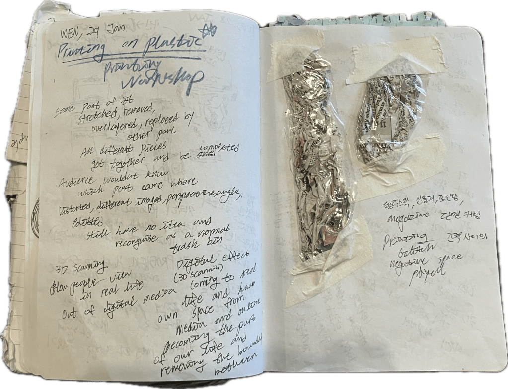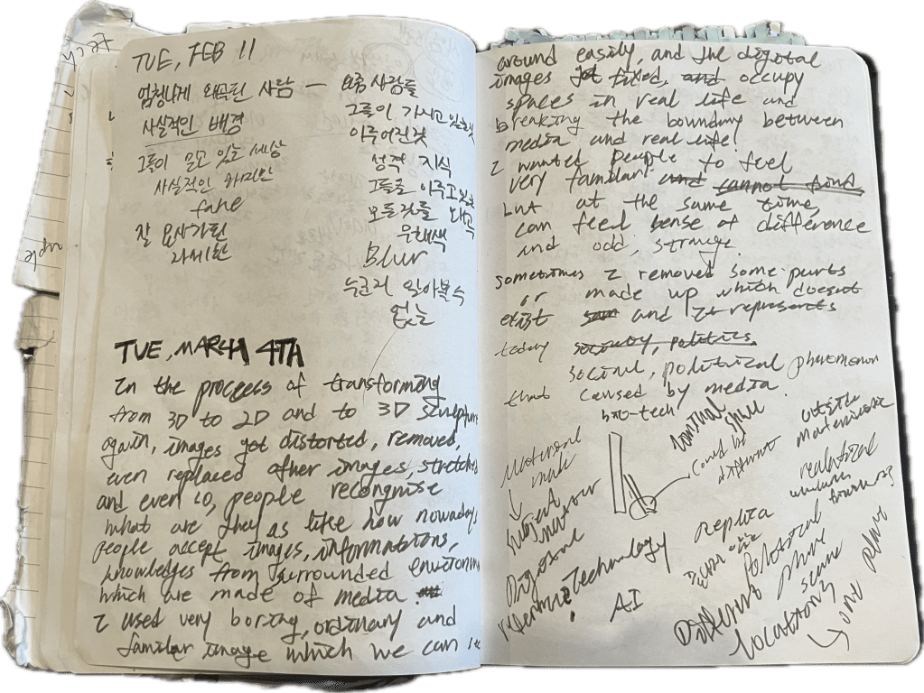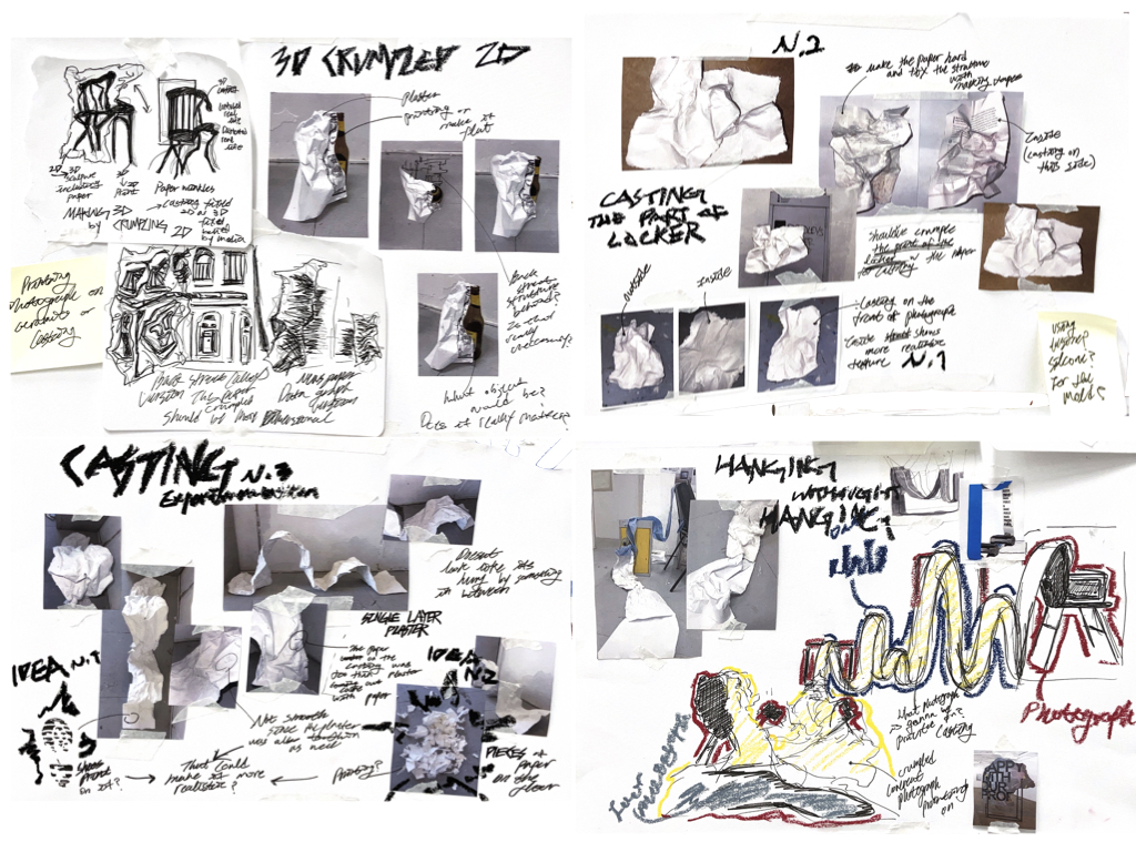 Transferring 2D to 3D and 3D to 2D to represent today that due to too much of dependence on media world, truth and false switched, confused, and beyond that it doesn’t even matter know. Tricking people to think plaster as a paper and to think printing as real objects and at the same time showing how it is easy to make people trust. The crumpled paper holds presence in reality, while the locker, firm in appearance, is merely a fragile sheet.